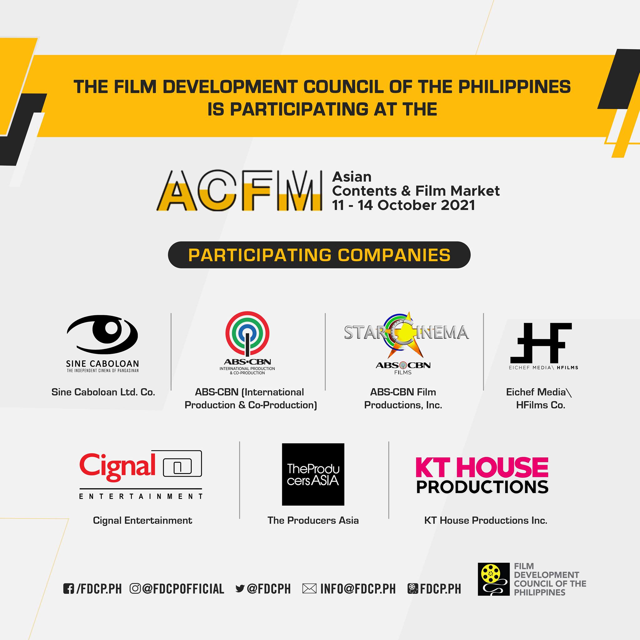 MANILA, PHILIPPINES, OCTOBER 14, 2021 — Leading the country’s representatives, the Film Development Council of the Philippines (FDCP) along with seven Filipino companies, are taking part in the Asian Contents & Film Market (ACFM) in Busan from October 11 to 14.