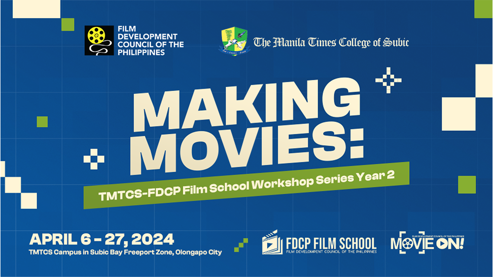 MAKING MOVIES: TMTCS-FDCP Workshop SeriesIn partnership with The Manila Times College of Subic (TMTCS), the Film Development Council of the Philippines (FDCP) is set to conduct a filmmaking workshop titled “Making Movies: TMTCS-FDCP Film School Workshop Series Year 2,” which will be held starting on April 6 until April 27 at the TMTCS campus in Subic Bay Freeport Zone, Olongapo City. - Film Screenings
